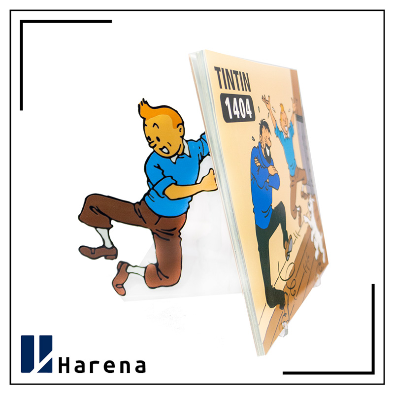 پایه پلکسی ایرانی (اقتصادی) ,پایه شیشه ای ,پایه فیگور دو بعدی تن تن و کاپیتان هادوک با جعبه و کاغذ یادداشت تن تن |